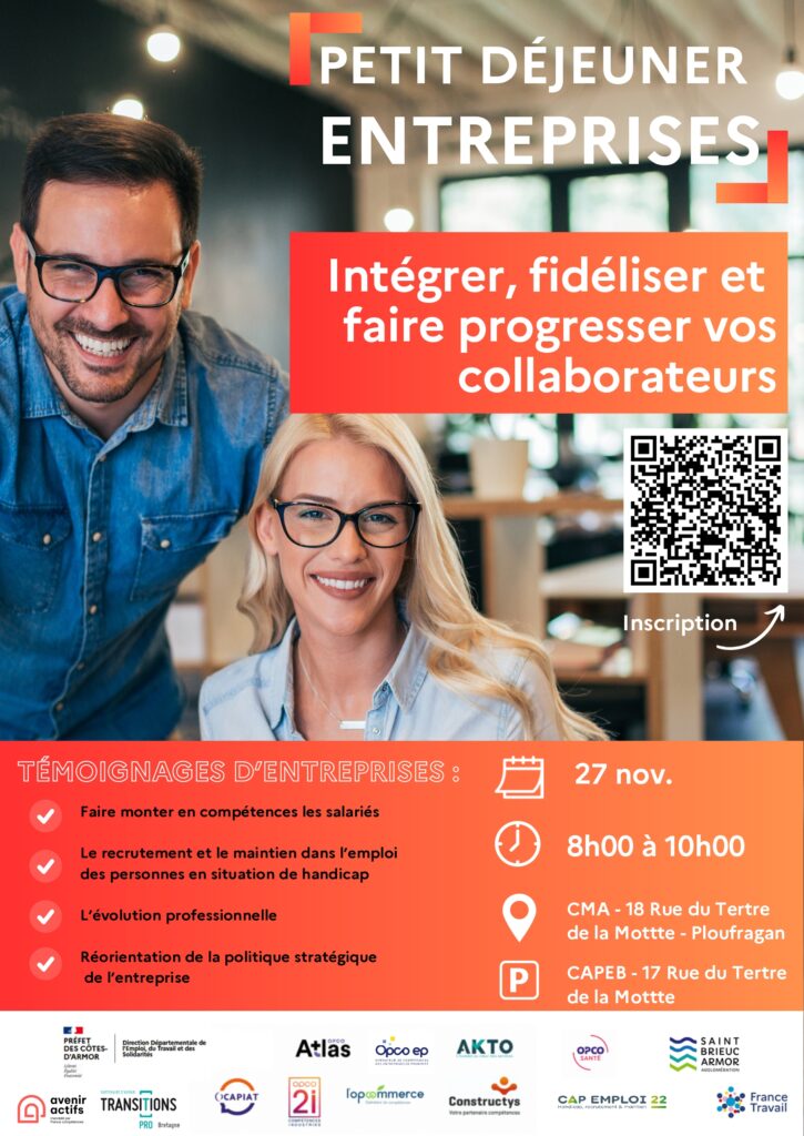 Cet événement réunira plusieurs partenaires dont CAP EMPLOI 22, France Travail, les OPCO, Avenir Actifs etc…